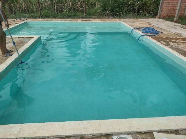 Casa com 3 quartos e 1 suite, sala de jantar, sala de estar, cozinha, varanda, piscina 7 x 5, 2 tanques com mina de água, todo cercado de alambrado