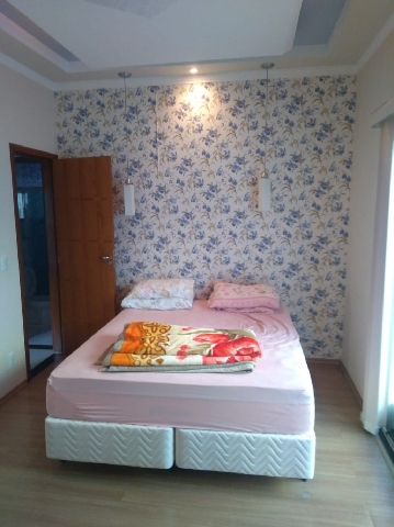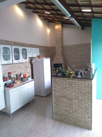 Casa com 2 quartos sendo uma suite com hidromassagem, área gourmet c/churrasqueira, sala, cozinha, banheiro, garagem para 2 carros.